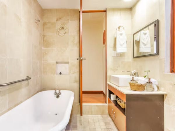 This suite maintains the charm and elegance of the original house. The property's authentic hardwood floor and original wooden doors with their classic wooden curtains complement the historic ambiance.