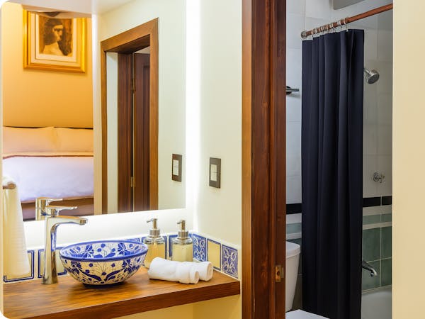 Suite Colonial combines the majesty of history with contemporary comfort. This exclusive space occupies what was originally the only bathroom in the entire property, a testimony to the times when there was only one bathroom in the entire hacienda due to the limited public services of the time.