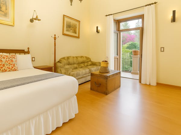 Our Herencia Suite is a haven of peace and tranquility that invites you to relax as you open the doors to connect with life as it was in a Mexican mansion in the 1800's with an enchanting view of the garden, which is enjoyed both from the room and from the balcony, where it offers the perfect place to enjoy breakfast, a morning coffee, or relax with a drink after a day full of activities.