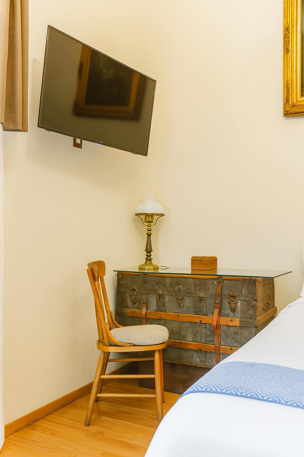With a height of 4 meters, the suite is distinguished by its spacious and luminous ambiance, accentuated by a beautiful antique chandelier that recalls the elegance of past centuries. Here, historical details blend harmoniously with modern comforts. The suite features an antique bathtub and shower, where you can enjoy a relaxing bath that evokes the colonial atmosphere, while experiencing the comfort and functionality of modern times.