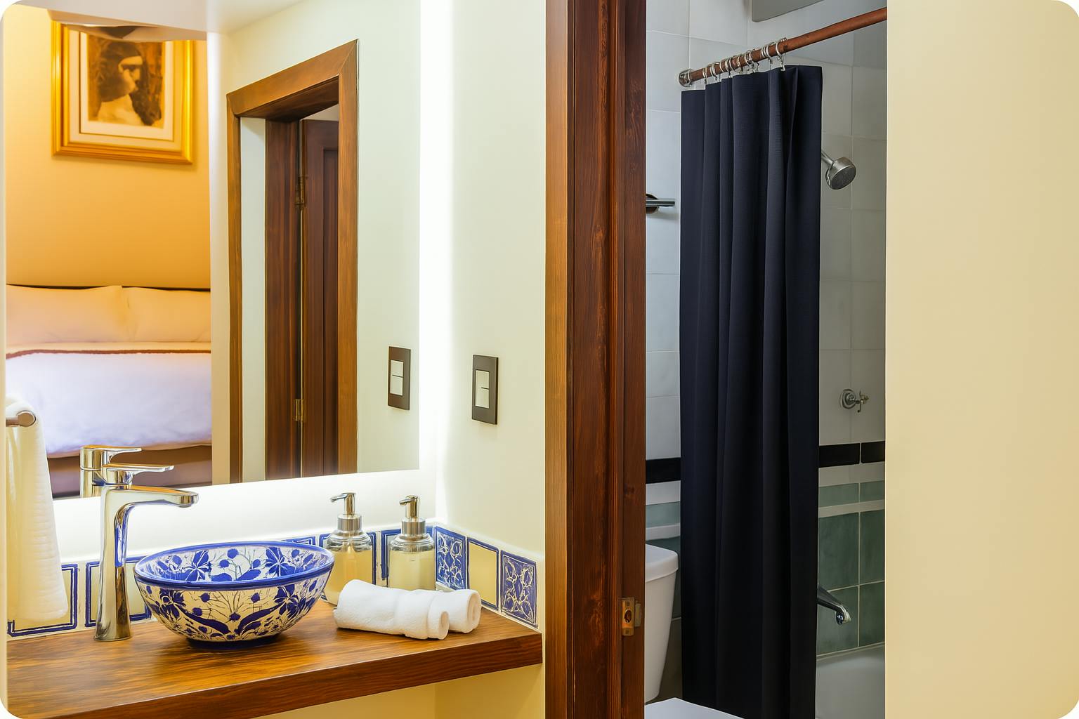 Suite Colonial combines the majesty of history with contemporary comfort. This exclusive space occupies what was originally the only bathroom in the entire property, a testimony to the times when there was only one bathroom in the entire hacienda due to the limited public services of the time.